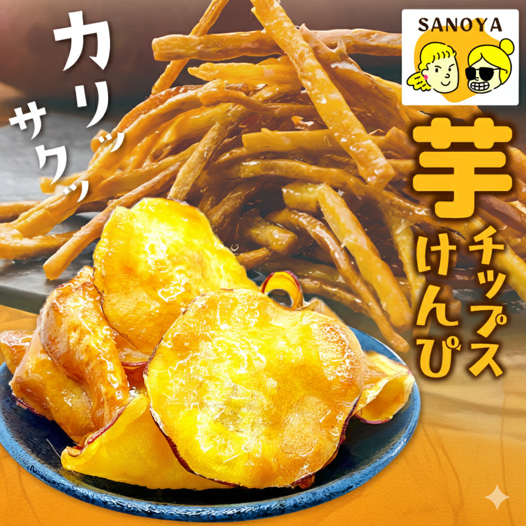 さのやの大人気お芋チップスは、国産さつまいもの一大ブランド「鳴門金時」を贅沢に使用し、すべて手作業で丁寧に仕上げたこだわりの逸品です。