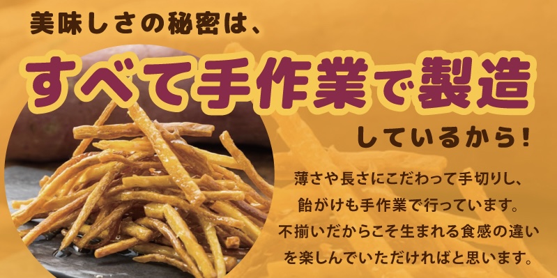 海外から帰国したとき、久しぶりに食べた“大学いも”に衝撃を受けました。 外はカリッ…中はホクホク!!これは『おいしすぎる!!』と思わず連発!これ以上の商品を自分で作りたい!「この感動を、もっとたくさんの人に届けたい」 そこから私たち姉妹の挑戦が始まりました。